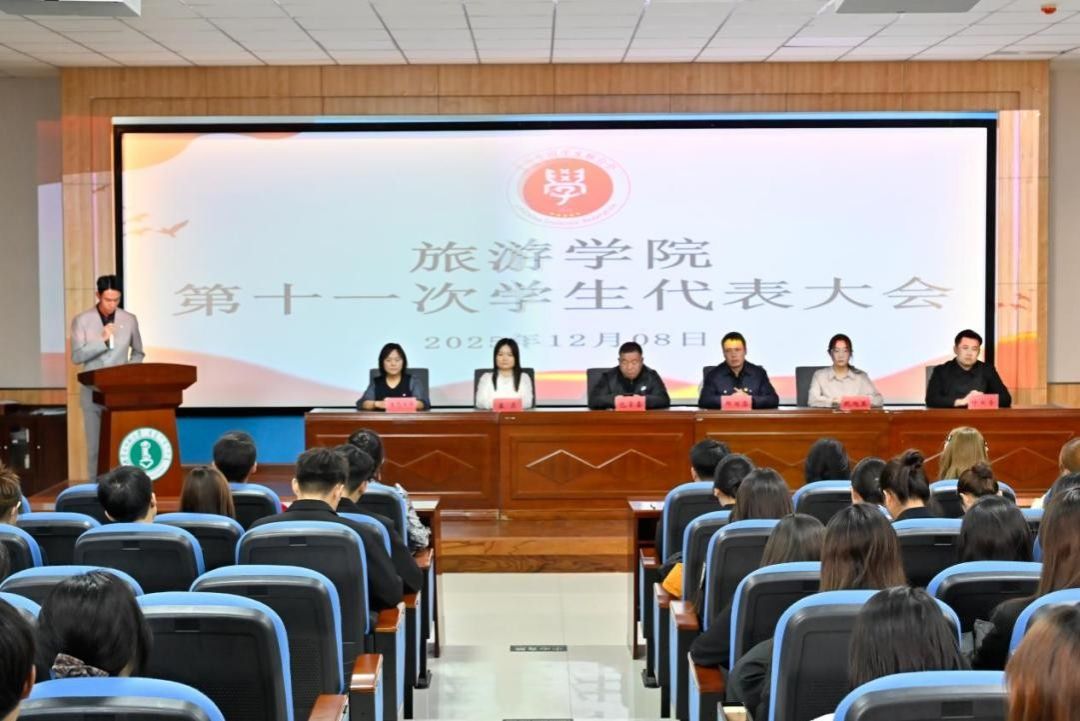 12月8日,旅游学院第十一次学生代表大会在学生事务中心一楼学术报告厅隆重召开。学院党委副书记、副院长包常喜、学就办全体辅导员出席大会,各班级学生代表参加大会。团总支书记那日苏主持大会。